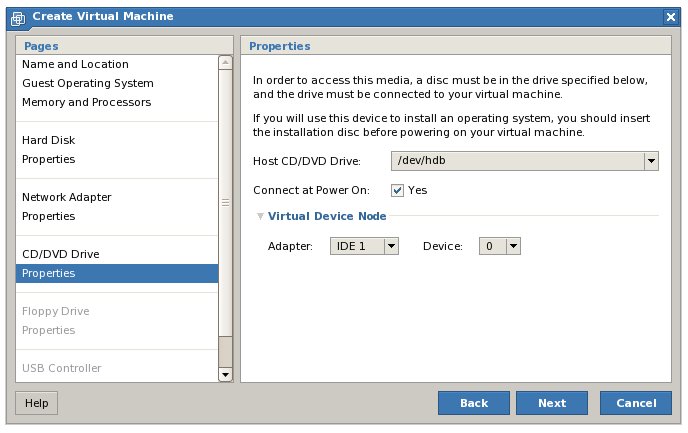 Unless the virtual machine is going to boot the guest operating system installation image via the network from a PXE server, the guest operating system will need to be loaded from some other form of media. VMware Server 2.0 provides the ability to specify either that the virtual machine has access to a physical CD/DVD drive attached to the host, or that the CD/DVD device be a CD or DVD ISO image located on the host file system.